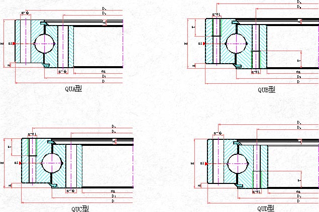 | 注:無齒式(QU)系列外形尺寸由相同滾道中心直徑的內(nèi)齒式D和外齒式dn組成,其堵塞與油孔布置在外圈上。 |